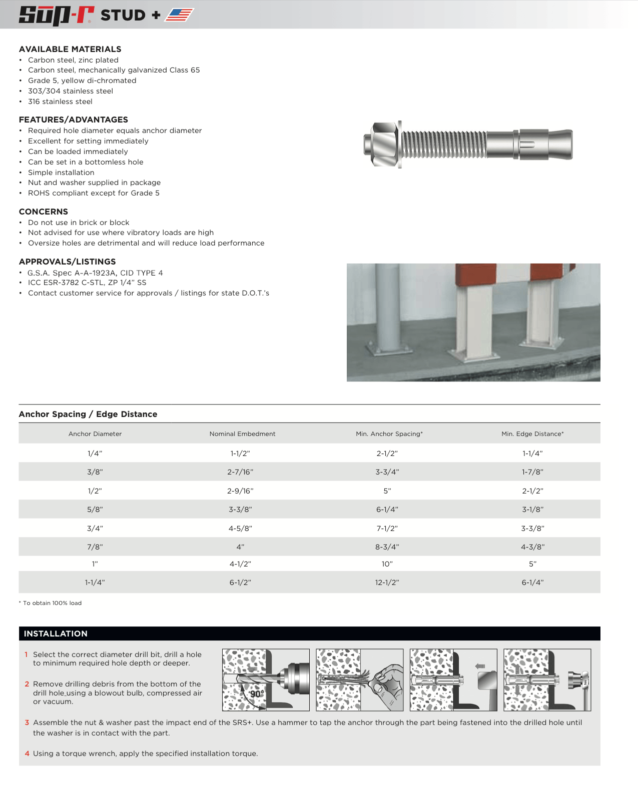 - ICC ESR-3782 C-STL, ZP 1/4” SS